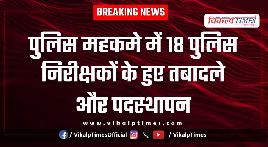 पुलिस महकमे में 18 पुलिस निरीक्षकों के हुए तबादले और पदस्थापन