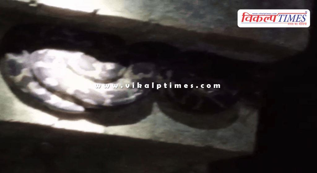 सवाई माधोपुर: खंडार में एक मकान में घुसा 10 फिट लंबा अजगर, अजगर को सीढ़ियों पर बैठा देख घर में मची अफरा-तफरी, बीती रात करीब 11 बजे मकान मालिक ने अजगर को देखा सीढ़ियों पर रेंगते हुए, अचानक 20 किलो का अजगर सामने आने से परिवार और आसपास के लोग आए द*हशत में, सूचना मिलने पर वन विभाग की टीम पहुंची मौके पर, करीब आधे घंटे की कड़ी मशक्कत के बाद अजगर का किया रेस्क्यू, रेस्क्यू कर अजगर को छोड़ा जंगल में, सवाई माधोपुर जिले के खंडार के गणेश नगर क्षेत्र की है घटना।