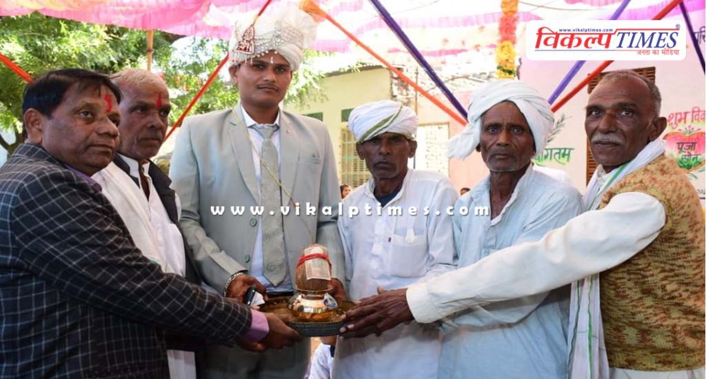 सवाई माधोपुर : दामोदर लाल बौद्ध वरिष्ठ अध्यापक निवासी चकचैनपुरा ने अपने सुपुत्र सोनू की शादी भैरूपुरा निवासी सुरेश कुमार बैरवा की सुपुत्री पुजा के साथ बड़ी सादगी के साथ और बिना दहे*ज के की। शादी समारोह में पंचों के सामने शगुन के रूप में नारियल और एक रूपया से अपने समधी ओर परिवार के साथ बड़े ही उल्लास और उमंग के साथ स्वीकार किया। इस शादी की चर्चा आस पास गांवों में हो रही हैं।