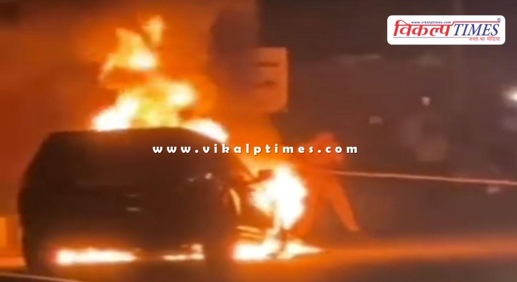 चलती कार में लगी आग, ड्राइवर ने कूदकर बचाई जान
