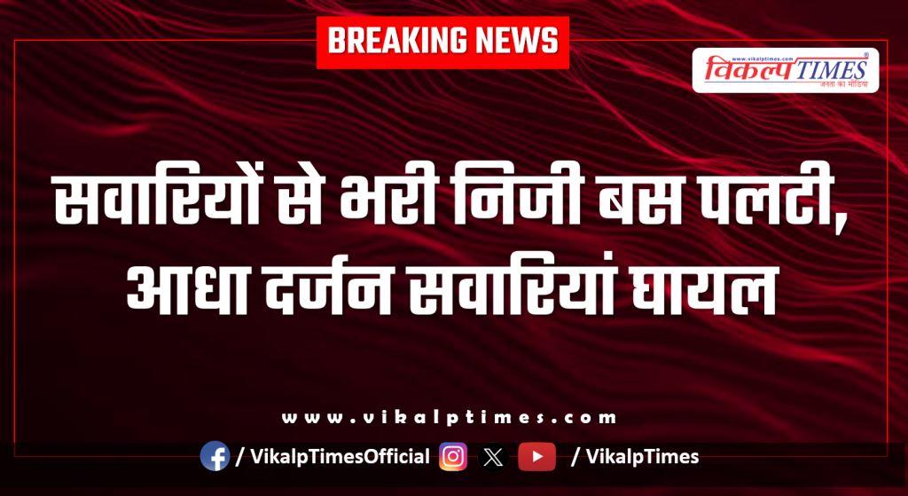सवारियों से भरी निजी बस पलटी, आधा दर्जन सवारियां घायल