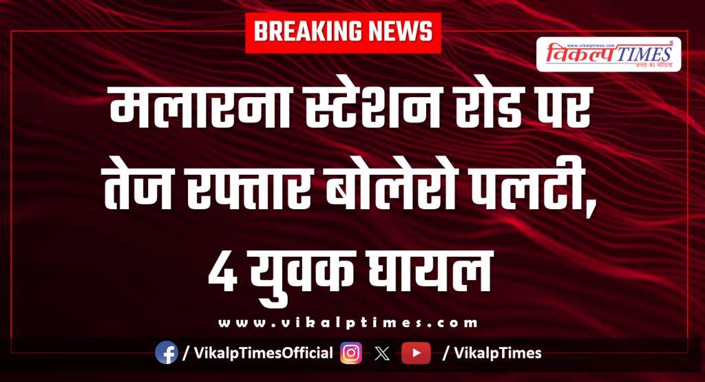 मलारना स्टेशन रोड पर तेज रफ्तार बोलेरो पलटी, 4 युवक घायल