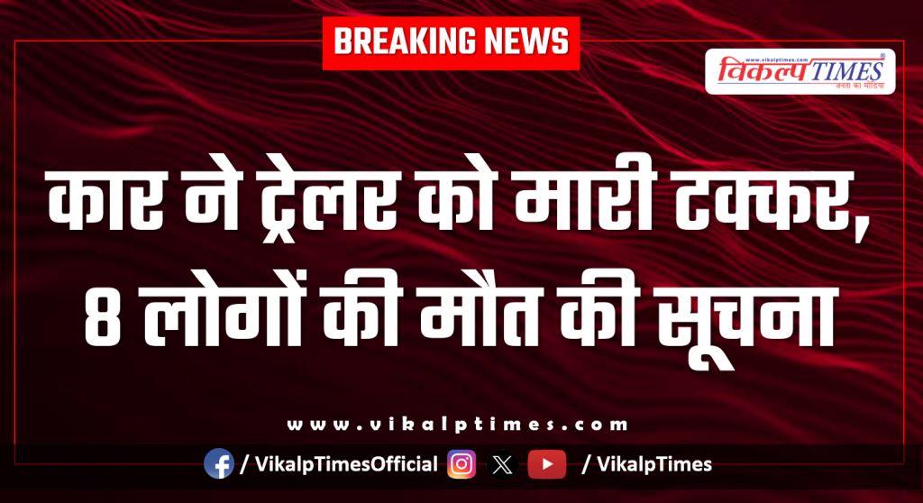 कार ने ट्रेलर को मा*री टक्कर, 8 लोगों की मौ*त की सूचना