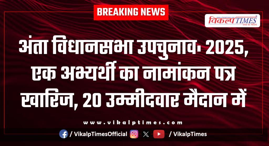जयपुर: अंता विधानसभा क्षेत्र के उपचुनाव 2025 के तहत गुरुवार को नामांकन पत्रों की संवीक्षा प्रक्रिया पूरी की गई है। कुल 21 अभ्यर्थियों द्वारा नाम निर्देशन पत्र प्रस्तुत किए गए थे। संवीक्षा के दौरान उर्मिला जैन (आईएनसी) का नामांकन पत्र खारिज कर दिया गया।