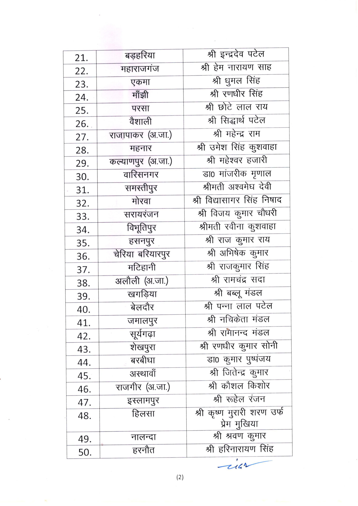 बिहार: बिहार विधानसभा चुनाव के लिए मुख्यमंत्री नीतीश कुमार की पार्टी जनता दल यूनाइटेड (जेडीयू) ने बुधवार को अपने उम्मीदवारों की पहली लिस्ट जारी कर दी है। इस लिस्ट में चार महिलाओं सहित कुल 57 उम्मीदवारों के नाम शामिल हैं। जेडीयू ने इस लिस्ट में सराय रंजन से मंत्री विजय कुमार चौधरी, आलमनगर से नरेंद्र नारायण यादव, बिहारीगंज से निरंजन कुमार मेहता, सिंघेश्वर से रमेश ऋषि देव, मधेपुरा से कविता साहा और महिषी से गंधेश्वर शाह को टिकट दिया है।