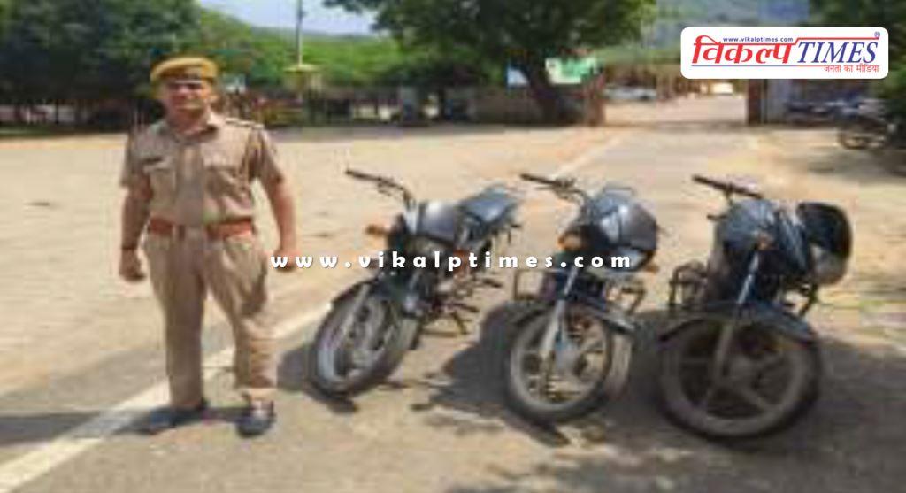 सवाई माधोपुर: कुंडेरा थाना पुलिस की कार्रवाई, एसपी अनिल कुमार बेनीवाल के निर्देशन में एसएचओ हरभान सिंह ने की कार्रवाई, चेकिंग के दौरान तीन लावारिस बाइकों को किया किया जब्त, खिलचीपुर रोड पर लावारिस स्थिति में खड़ी तीनों बाइकों को 38 पुलिस एक्ट में किया जब्त।