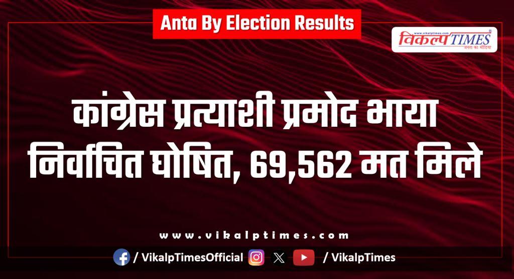 Congress candidate Pramod Bhaiya declared elected, secured 69,562 votes
