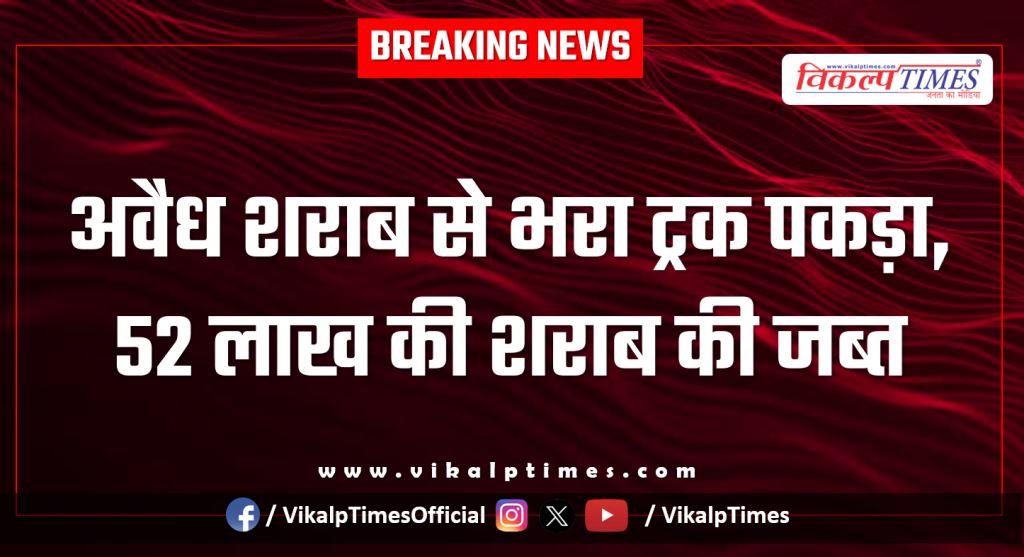 अ*वैध श*राब से भरा ट्रक पकड़ा, 52 लाख की श*राब की जब्त