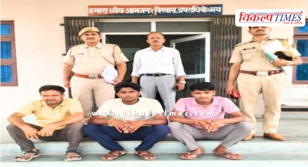 सवाई माधोपुर: गंगापुर सिटी थाना पुलिस की कार्रवाई, एसपी अनिल कुमार बेनीवाल के निर्देशन में एसएचओ बनी सिंह ने की कार्रवाई, पुलिस ने अलग-अलग जगह कार्रवाई करते हुए अ*वैध बजरी से भरे दो ट्रैक्टर-ट्रॉली किए जब्त, वहीं तीन लोगों को किया गिर*फ्तार, पुलिस ने आरोपी सुनील उर्फ सेठी (21) पुत्र रामस्वरूप निवासी बिलोली मलारना डूंगर, धौलसिंह (39) पुत्र बृजलाल गुर्जर निवासी आरपुरा महारावंडा बाटोदा और बिष्णु गुर्जर (25) पुत्र मदनमोहन निवासी बिलोली मलारना डूंगर को किया गिर*फ्तार।