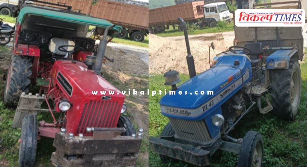अ*वैध बजरी से भरे दो ट्रैक्टर-ट्रॉली जब्त