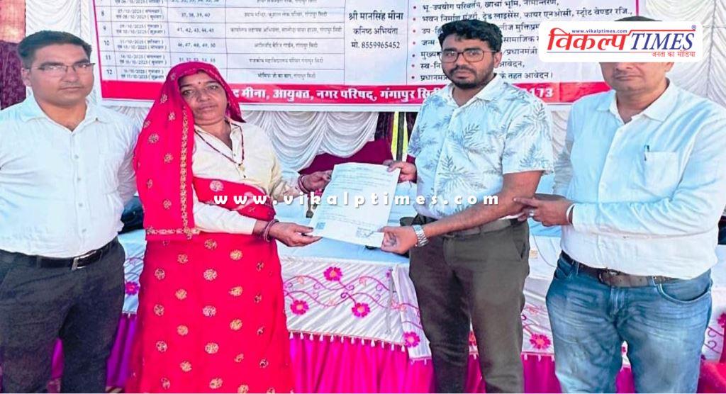 नगर परिषद गंगापुर सिटी परिसर में आयोजित शिविर के दौरान बजरंग नगर निवासी हल्की देवी को भवन निर्माण हेतु नगर परिषद से स्वीकृति पत्र प्राप्त होने पर हल्की देवी ने अपनी खुशी व्यक्त करते हुए कहा “शहरी सेवा शिविर गरीब, जरूरतमंद आमजन के लिए वरदान साबित हो रहे हैं। वर्षों पुराना मेरा सपना आज पूरा होने की राह पर है। इसके लिए मैं मुख्यमंत्री श्री भजनलाल शर्मा और राजस्थान सरकार की आभारी हूँ।