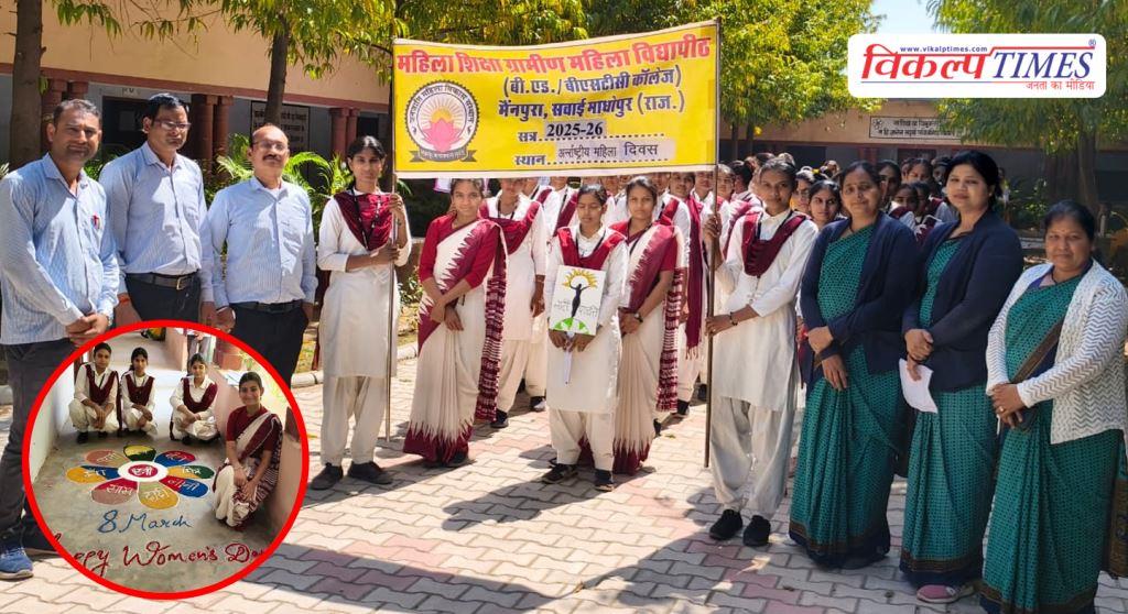 सवाई माधोपुर: सवाई माधोपुर के मैनपुरा स्थित महिला शिक्षा ग्रामीण महिला विद्यापीठ में शनिवार को अंतर्राष्ट्रीय महिला दिवस (International Womens Day) के अवसर पर विभिन्न कार्यक्रमों का आयोजन किया गया। इस दौरान छात्राध्यापिकाओं द्वारा मैनपुरा गांव में रैली निकालकर महिला समानता के प्रति समाज को जागरूक किया गया और महिलाओं के योगदान की सराहना करने का संदेश दिया गया।