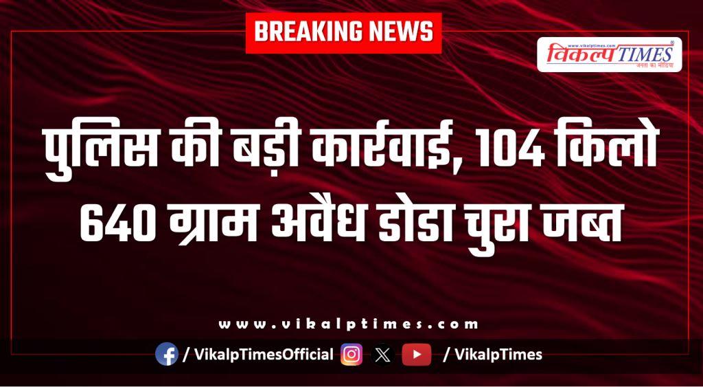 पुलिस की बड़ी कार्रवाई, 104 किलो 640 ग्राम अ*वैध डो*डा चु*रा जब्त