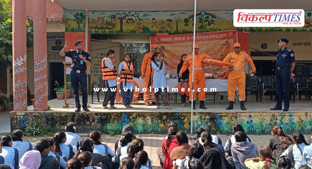 सवाई माधोपुर: राजकीय बालिका उच्च माध्यमिक विद्यालय मानटाउन, सवाई माधोपुर में मंगलवार को एनडीआरएफ की ई/06 बटालियन ने स्कूल सेफ्टी कार्यक्रम आयोजित कर छात्राओं को आपदा प्रबंधन के प्रैक्टिकल उपयोगी गुर सिखाए। यह कार्यक्रम कमांडेंट सुरेन्द्र सिंह के आदेशानुसार, सहायक कमांडेंट प्रवीण कुमार के पर्यवेक्षण तथा टीम कमांडर/निरीक्षक अरुण शर्मा एवं कैलाश चंद बाना के नेतृत्व में सम्पन्न हुआ।