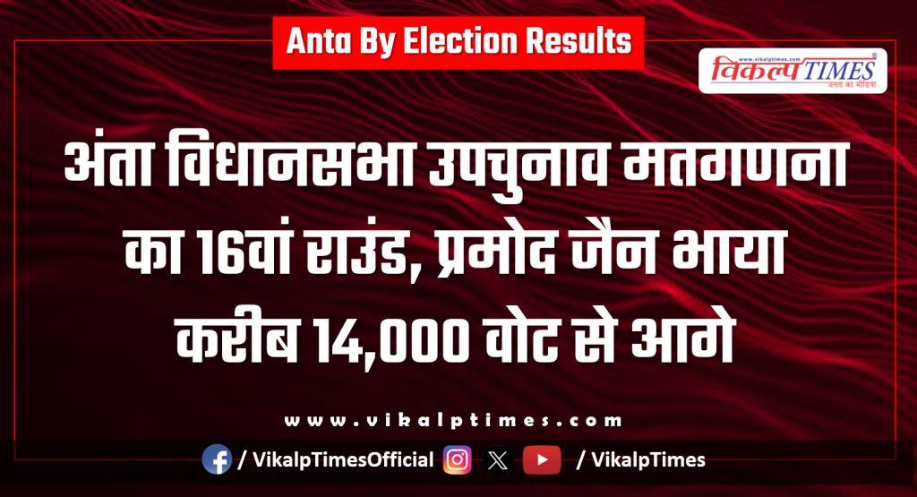 अंता विधानसभा उपचुनाव मतगणना का 16वां राउंड, प्रमोद जैन भाया करीब 14,000 वोट से आगे