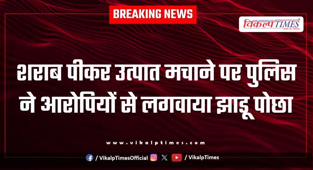 श*राब पीकर उत्पात मचाने पर पुलिस ने आरोपियों से लगवाया झाड़ू पोछा