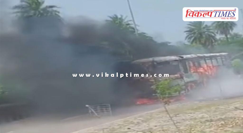 बूंदी रोड पर रोडवेज बस में लगी आग