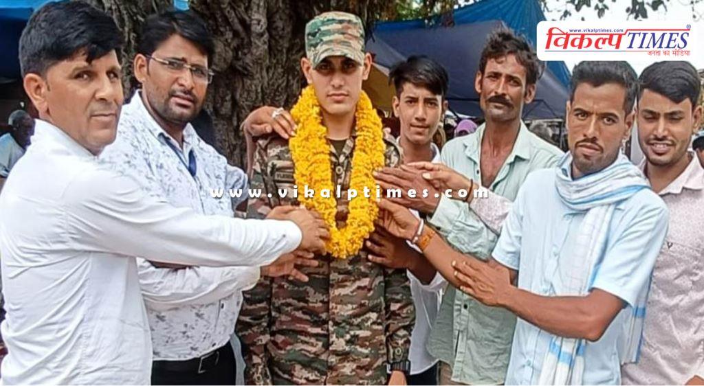 सवाई माधोपुर: बौंली क्षेत्र की मित्रपुरा तहसील कस्बे के समीपवर्ती ग्राम कुटका गाँव का निवासी विजेंद्र गुर्जर का देश की सरहद पर ड्यूटी से पहली बार अपने पैतृक गांव कुटका में आने पर शुक्रवार को मित्रपुरा तहसील मुख्यालय पर बस स्टैंड पर सैकड़ों लोगों ने फुल मालाओं से भव्य स्वागत किया। विजेंद्र गुर्जर का देश की सेवा करने के मार्ग पर चलने से अब गांव में अन्य युवाओं में भी देश की सेवा करने की भावना देखने को मिली।