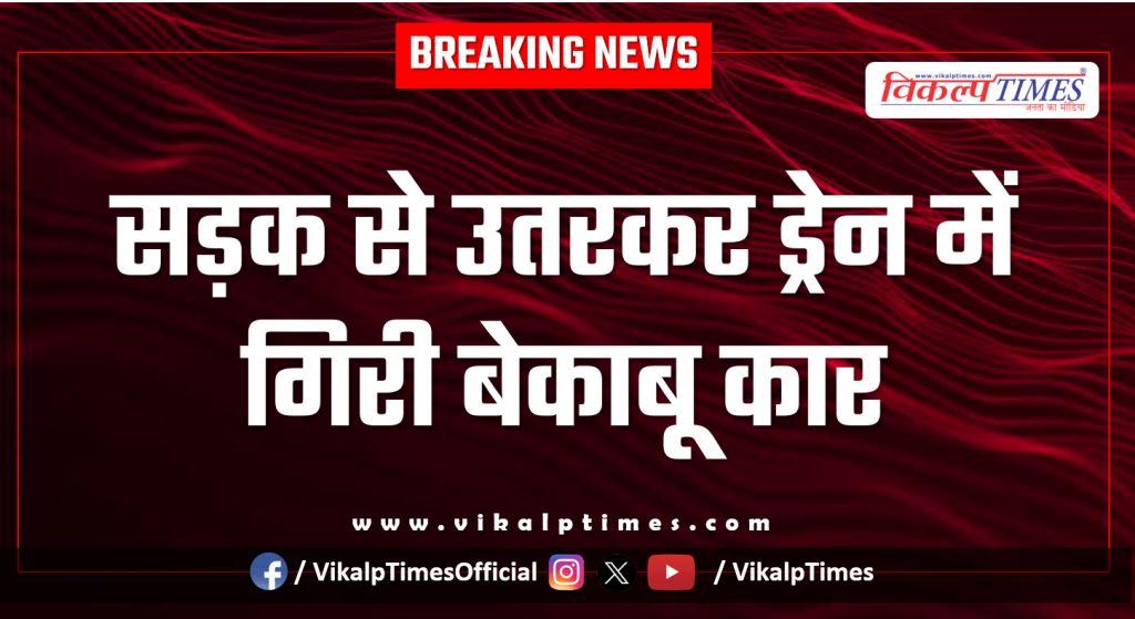 सड़क से उतरकर ड्रेन में गिरी बेकाबू कार